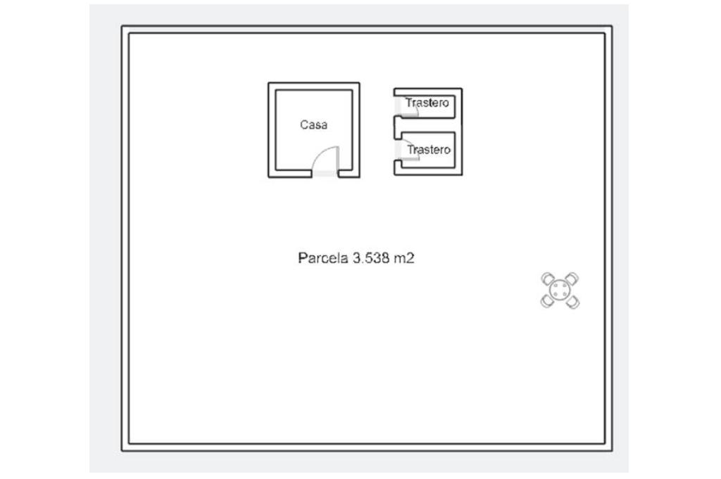 La parcela es rústica, con 3.538 m2 y cuenta también con dos trasteros para desahogo. Está completamente vallada